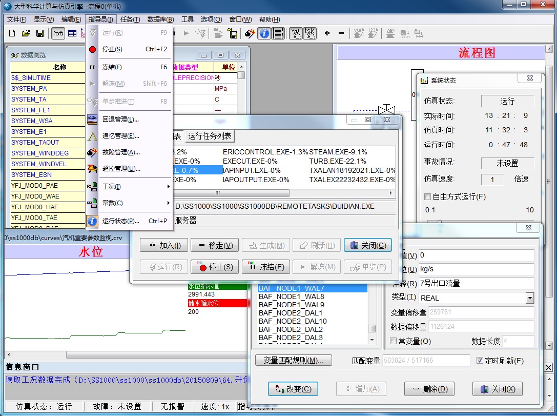 大型科學計算與仿真引擎SimuEngine(早期版本為VCS3和SE2000)是一個介于仿真系統和計算機操作系統之間的可視化仿真支撐系統,可運行在微機的Windows 7/8.x/10/11、以及服務器版本的2008/2012/2016/2019等32位和64位操作系統上。它提供了實時網絡數據庫及完整的仿真運行支撐功能,支持數據可視化、在線調試、協同開發、多任務并行運行、多流程及分布式仿真等功能。
