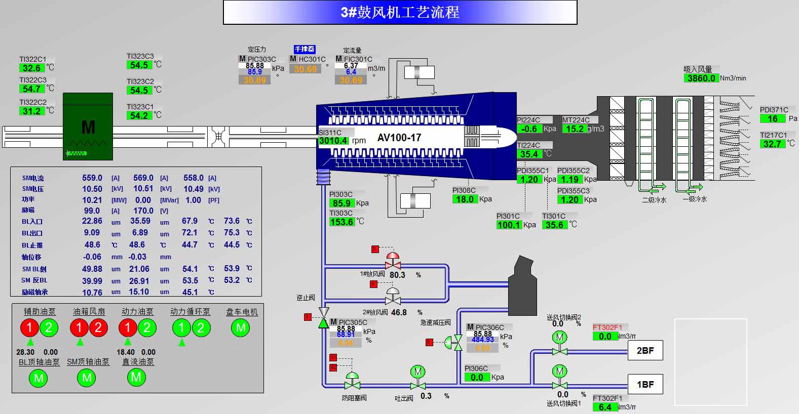 為了解決某大型軸流壓縮機用于鋼鐵廠TRT系統時存在頂壓控制不穩的問題,生產廠家與大風科技聯合開發了這套軸流壓縮機防喘振仿真研究系統,主要功能如下: